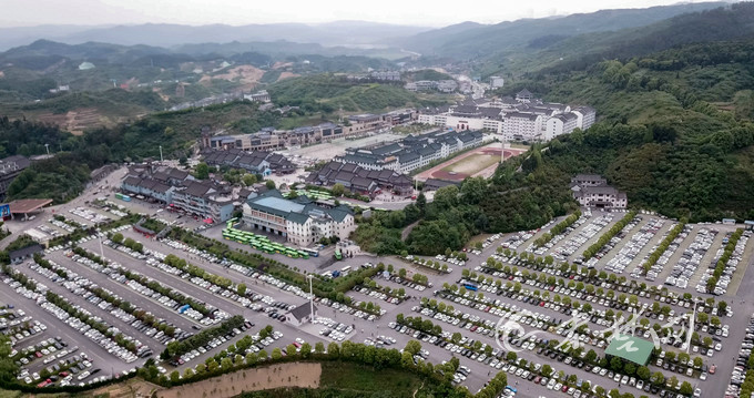 十一期间,武当山景区内停车场停满了自驾车辆。