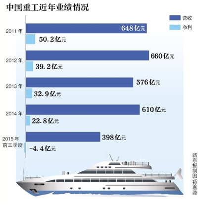 近年来,中国重工业绩的最高点出现在2011年,当年实现净利润50.2亿元。此后,中国重工的净利逐年下滑,但始终处于盈利状态。2015年也成为公司2009年上市以来首次年度亏损。