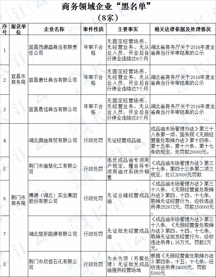 根据《湖北省商务领域企业“红黑名单”制度(试行)》(以下简称《制度》)规定,经市州推选、公示上报、征求意见等程序,形成了158家商务领域企业“红名单”和8家商务领域企业“黑名单”。现将“红黑名单”予以公示,公示期从2018年2月7日至3月9日。