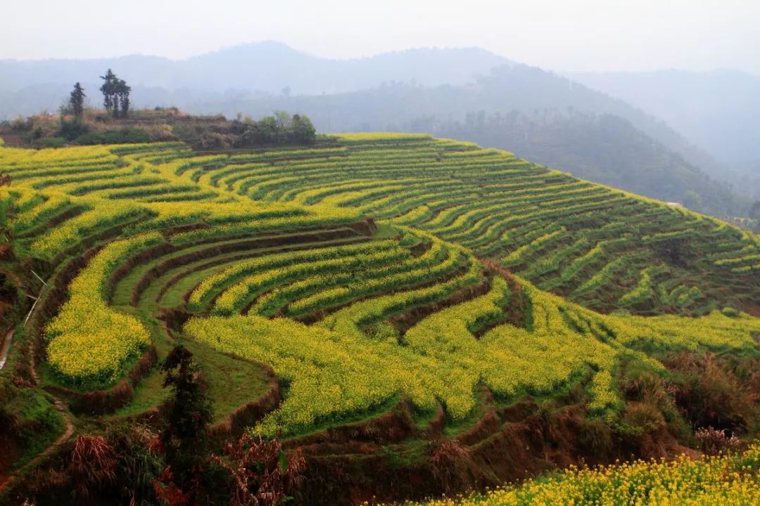不同于平原的梯田油菜花
