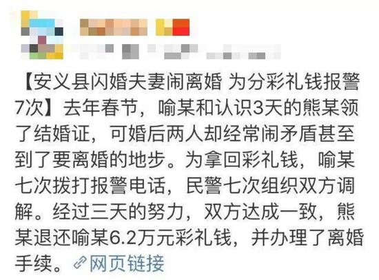 在江西安义县,“闪婚”成了乡俗,有了约定俗成的流程,相亲-对上眼(互有好感)-谈“盘子”(礼金)-下筹码(一次性交清礼金)-带人走(同床共枕)。