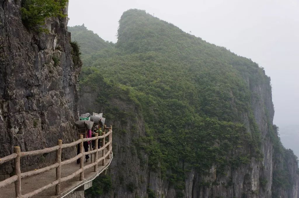 行走在五百米长的悬崖栈道上,七拐八弯,足下临空,就连平时胆子不小的人,都不禁两股瑟瑟,移步艰难。要是恐高患者,恐怕就得扶着墙走了。