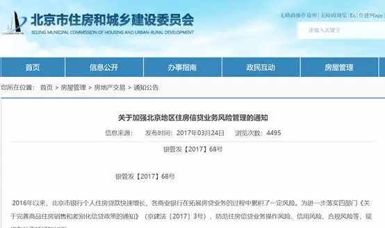 一周之后的3月24日,央行营管部、北京银监局、北京市住建委和北京住房公积金管理中心联合发布《关于加强北京地区住房信贷业务风险管理的通知》。