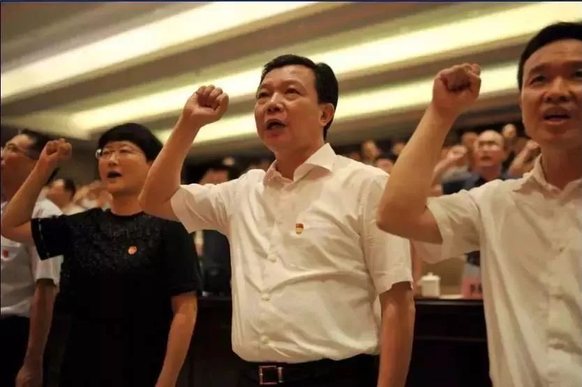 2017年7月1日,杨汉军与同事一起重温入党誓词