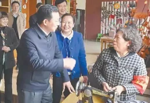 2016年3月,杨汉军(前排左一)到社区调研 资料照片