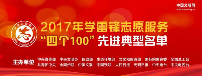 4月3日,中央宣传部、中央文明办在京召开全国学雷锋志愿服务工作推进会。会上公布了2017年学雷锋志愿服务最美志愿者、最佳志愿服务组织、最佳志愿服务项目和最美志愿服务社区“四个100”先进典型名单。