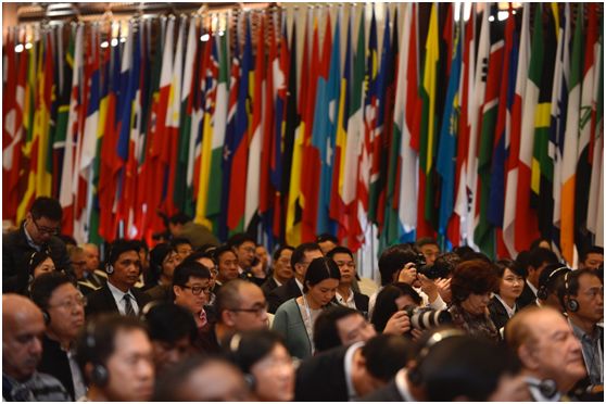▲ 2014年11月21日,为期3天的首届世界互联网大会在浙江乌镇落下帷幕。图为与会嘉宾参加闭幕式。新华社记者 鞠焕宗 摄