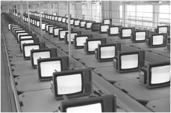 ▲ 这是试生产装配的彩色电视机在通过老化检验。新华社记者 李昌元 摄