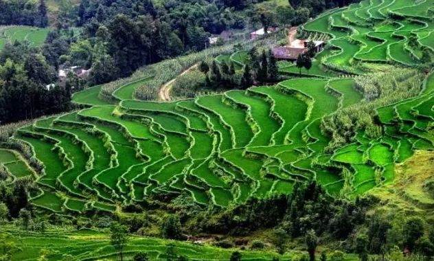 一梯接着一梯,一坎接着一坎,在草长莺飞的季节里,格外美丽。