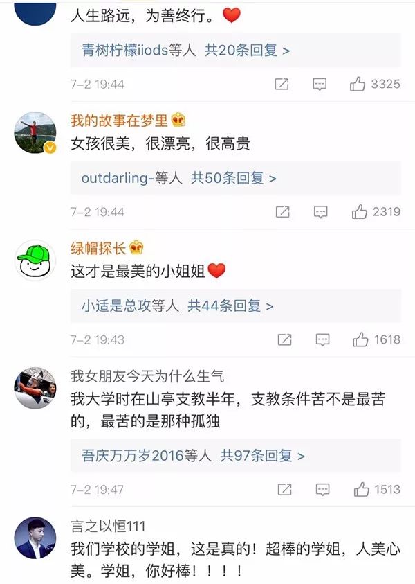 “鲁迅说过,无穷的远方,无数的人们,都和我有关。大概我和孩子们,也有着这样的关联,让我钟情于高山苗乡,去探访贫困儿童,去用尽一切关系给他们募集一点爱,去做所有我能做的,去选择留下。世界的改变不是少数人做了很多,而是每个人都做了一点点,我们种下一些种子,总有几颗能发芽,这就是我坚持的动力和意义。”