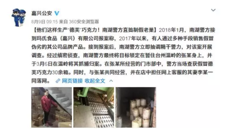 近日,@嘉兴公安发布了一条微博,曝出有人在生产假冒德芙,5200多箱销往20余省份!