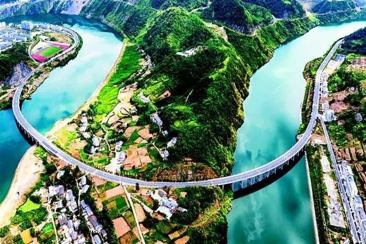 9月2日拍摄的346国道竹山县潘口乡潘口一、二号大桥跨越堵河的画面。竹山境内堵河贯穿全境,常因河流阻隔,造成山区群众出行难。近5年来,该县已在堵河上架起12座桥梁。