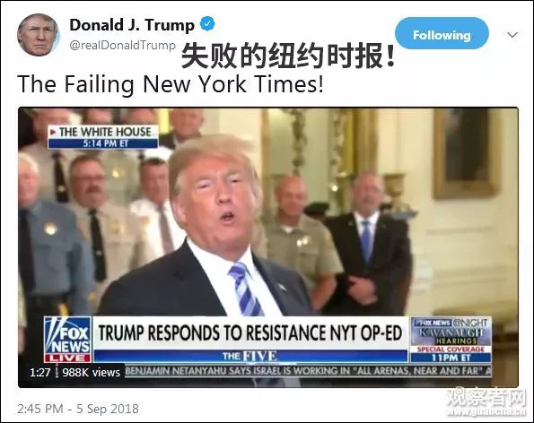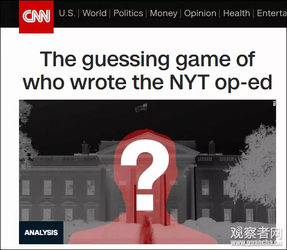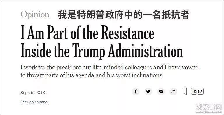 当天,特朗普身边的一名神秘高官在《纽约时报》上发表了一篇文章:《我是特朗普政府中的一名抵抗者》。