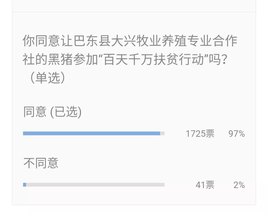 选择“同意”的1725票,占97%