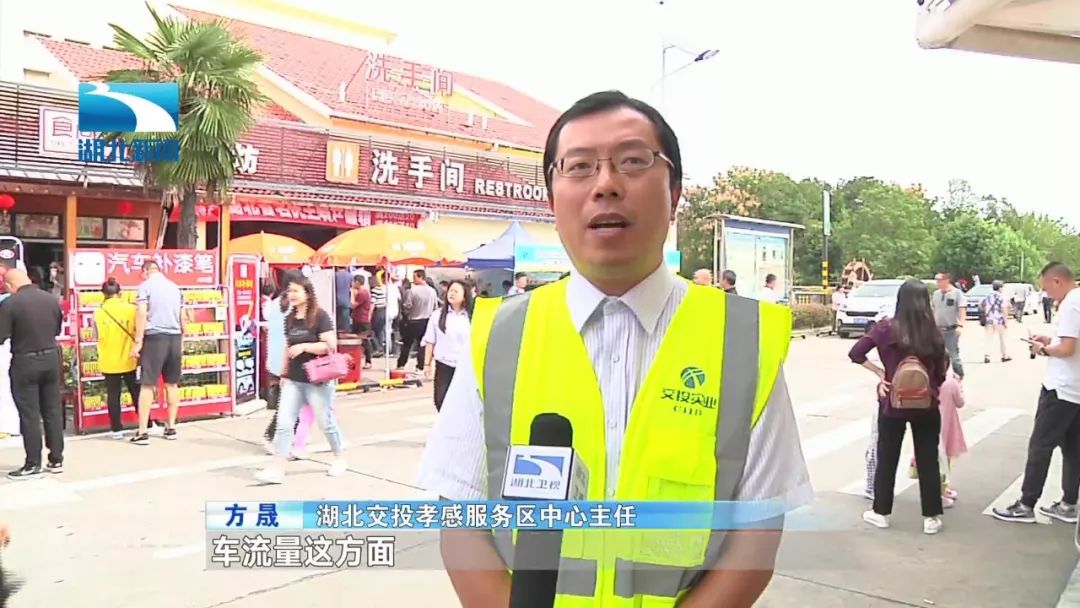 湖北交投孝感服务区中心主任 方晟:车流量这方面由平时的5000辆左右暴增到目前的2万辆左右,人员接近10万人。