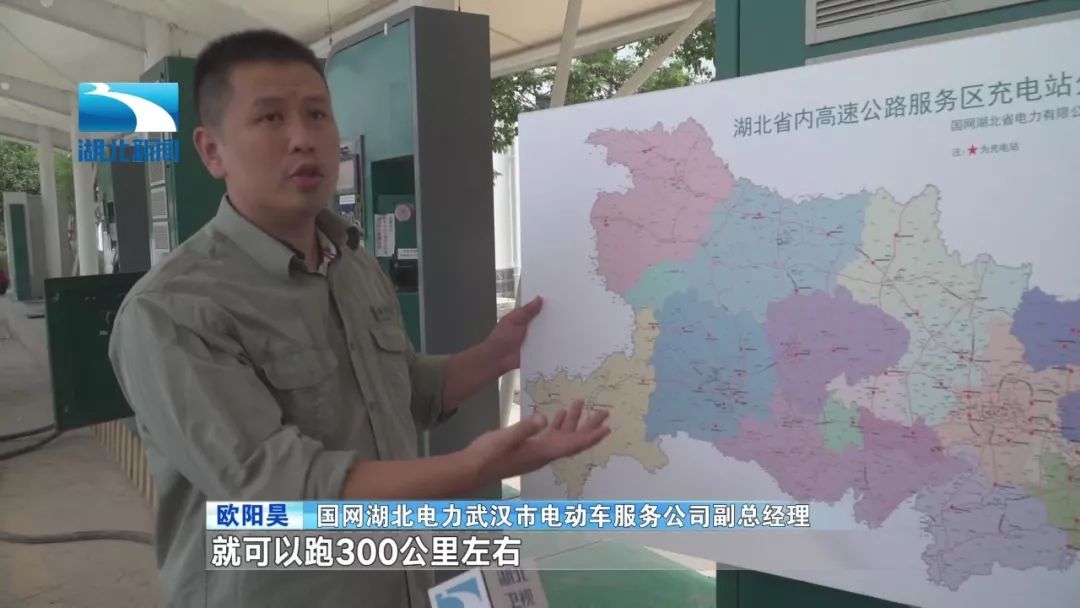 国网湖北电力武汉市电动车服务公司副总经理 欧阳昊:充电站的距离大概是50至100公里,在我们这里充30到40分钟电,就可以跑300公里左右。