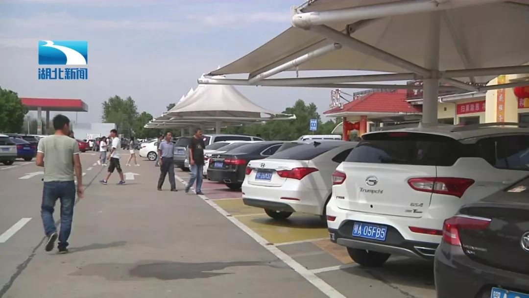 中午,在福银高速孝感服务区的停车场里,停满了全国各地的车辆。