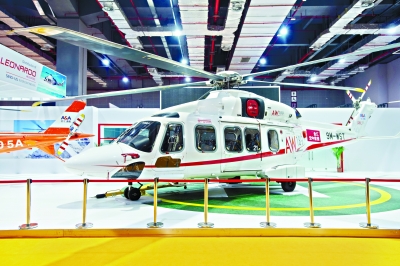 在智能及高端装备展区内展出的救援直升机 记者胡九思 摄