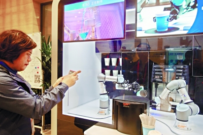 进博会开幕前夕,可满足4000名记者同时工作的新闻中心内一片忙碌,茶歇区的两个智能机器人却给记者同行送来片刻轻松:无人咖啡厅内的机械臂机器人正有条不紊为围观的记者调制拿铁咖啡,配合默契的机械臂精准地转动、摇晃、拉花,一分半钟的时间,一杯复刻咖啡大师手法调制的咖啡就轻松出炉;走廊上的“豹小秘”服务接待机器人来回穿梭,为记者提供咨询服务,具有人工智能。智能引领、人脸识别等众多功能的机器人不失亲和,还能陪人聊天,一时成为众多记者“热聊”的对象。