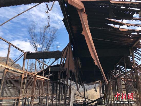 图为烧毁的房屋废墟。中新社记者 张朔 摄