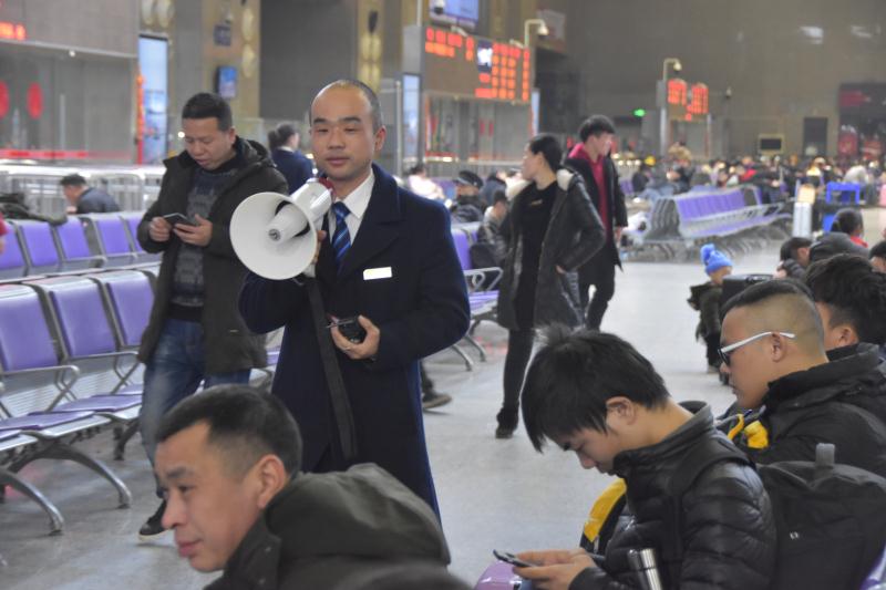 “亲爱的旅客朋友,在你们观看精彩演出的同时,请注意大屏幕上的候车信息……”在热闹的活动间隙,车站客运车间的青工们手持小喇叭不时提醒旅客。