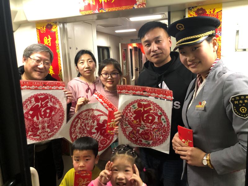 歌舞、游戏、朗诵......活动期间,工作人员还与旅客进行互动,发放小礼品。唤起了旅客们对家的思念、对亲人的牵挂,舟车劳顿暂忘一旁。