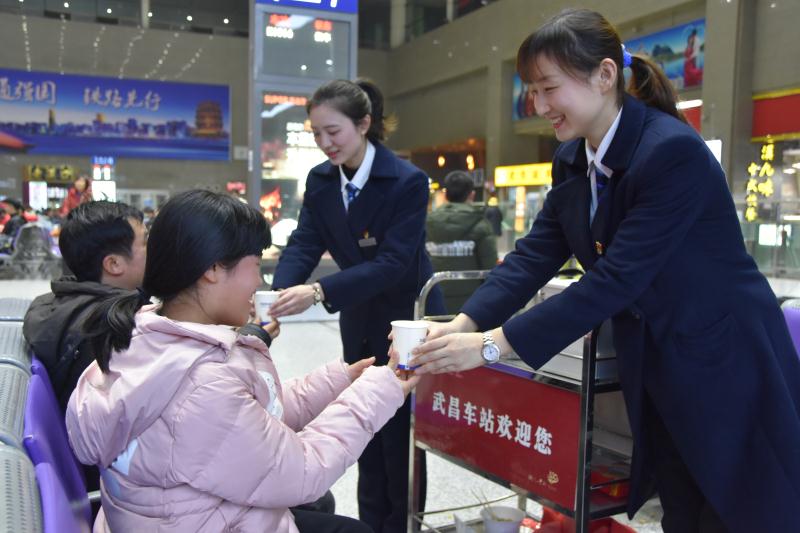 武昌车站、武汉客运段通过除夕夜开展“百年武昌站与‘新中国同龄’红旗列车接力春晚”等形式丰富的活动,把“平安春运、有序春运、温馨春运,让旅客体验更美好”的铁路春运工作理念融入到各项工作中,努力提升客运服务质量,让广大旅客有更多安全感、获得感和幸福感。