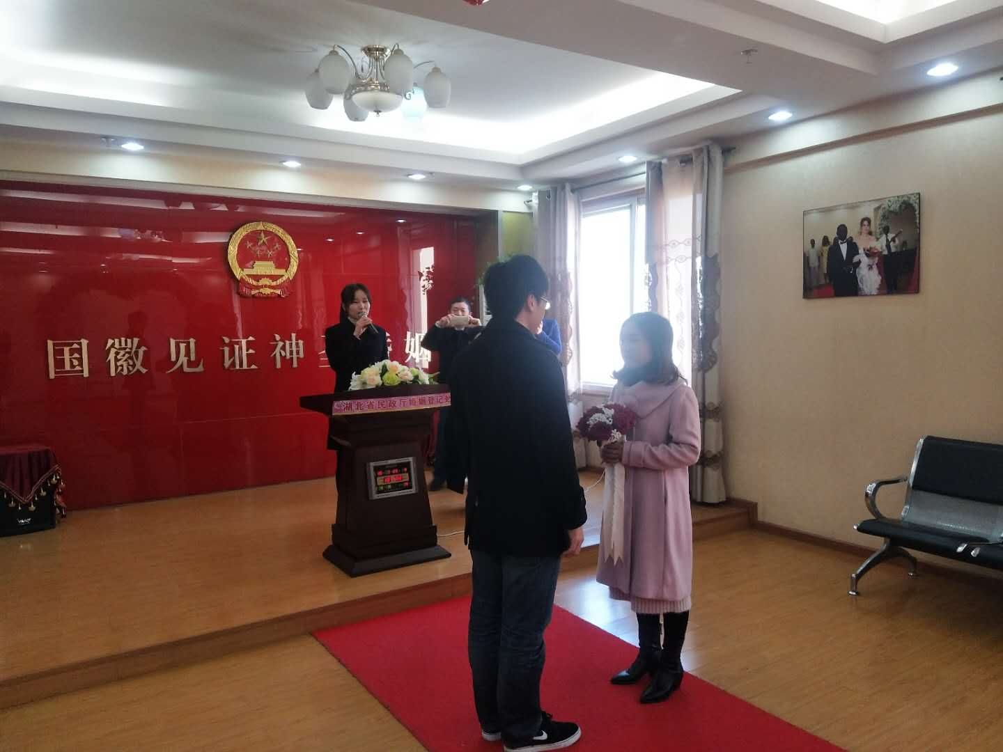 候登大厅里,前来咨询和办理业务的群众络绎不绝,所有叫号窗口均正常开放,接待人员热情洋溢,笑颜迎接每一对前来办理结婚登记手续的新人;登记人员严格认真,仔细检查每一份材料;颁证人员严肃活泼,精心准备每一段誓词;婚姻登记处负责同志不时到大厅巡查、了解情况,及时接待回答一些当事人的询问,帮助解决遇到的一些问题。