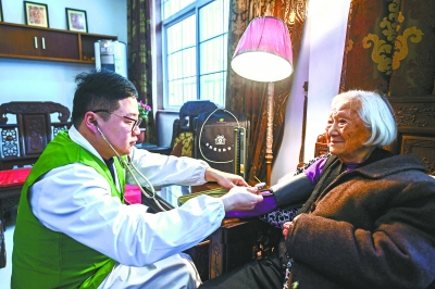 浙江省湖州市东林镇为老年人建立健康档案,以便今后进行连续跟踪随访 新华社发