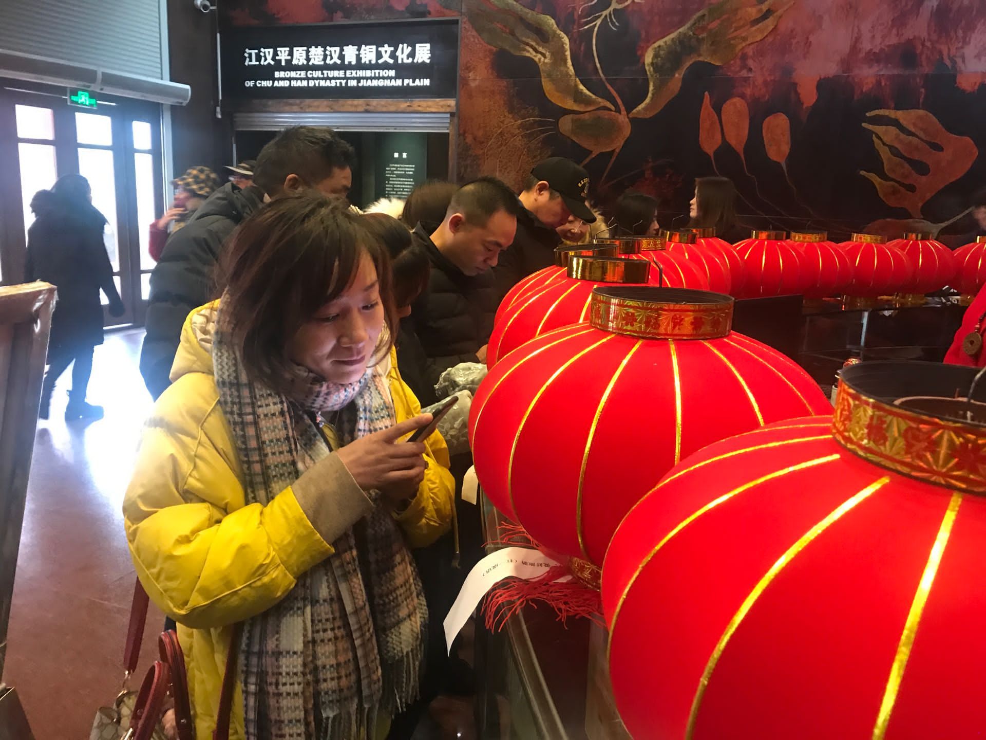 今天上午9点30分,荆州博物馆的领票窗口前已经排起了长队,虽然室外寒风瑟瑟,却依然挡不住人们到博物馆里体验年味儿的热情。大厅里数十个红红火火的灯笼使博物馆充满了节日气氛,而每只灯笼上悬挂的灯谜更是吸引了大批游客前来竞猜。活动现场人潮涌动,观众熙熙攘攘,摩肩接踵,热闹非凡。博物馆为每一位猜中灯谜的观众都准备了精美的小奖品,更让大家惊喜连连,收获满满。