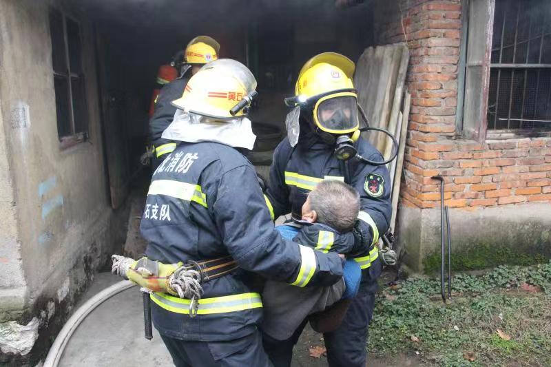 14时53分,消防指战员到达现场后,立即开展侦查工作,发现该起火房屋火势正处于发展阶段,四周烟雾弥漫,据现场报警人称,发生火灾的住宅内住有一位80多岁的独居老人且行动不便。当得知此情况后,指挥员立即拨打120急救电话,并下达作战命令:搜救组进入房间内部寻找被困老人,灭火组利用水枪进行灭火掩护。三分钟后,消防员在起火房屋一间卧室找到被困老人,消防员立即将老人抬上救护车进行救治。