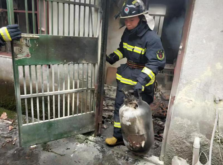到场后,消防队员利用干粉灭火器扑灭了明火,并用火钩将阴燃的火点扒开防止复燃,5分钟后成功将火扑灭。