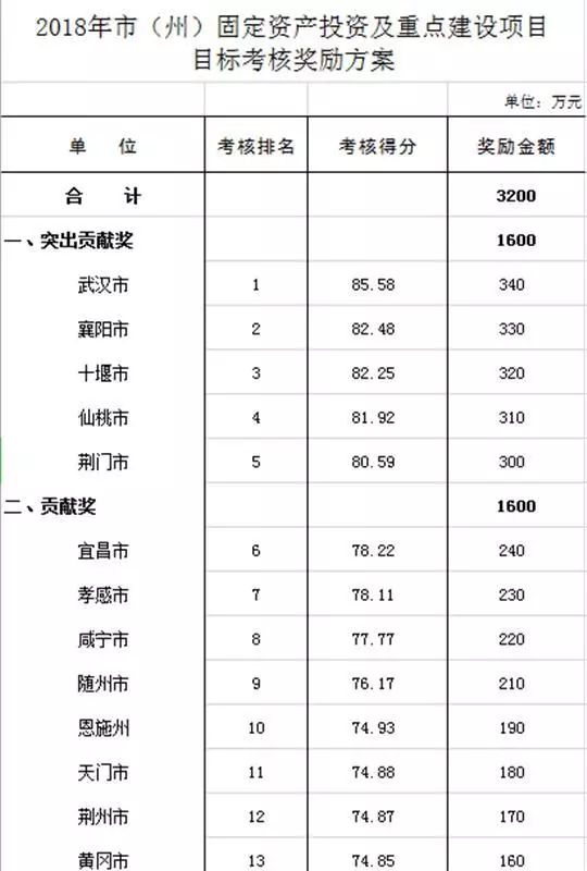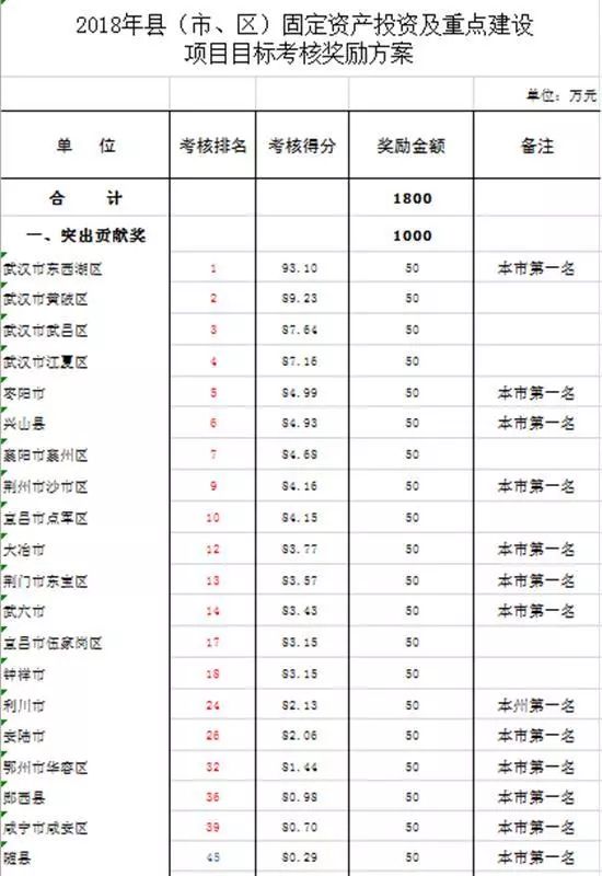 据透露,这些上榜地区将获得湖北省政府总计5000万元的奖金,其中: