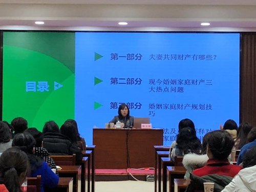 谢文敏从夫妻共同财产有哪些、现今婚姻家庭财产三大热点问题、婚姻家庭财产规划技巧、婚姻法及司法解释对婚姻家庭财产的其他规定等四个部分讲授婚姻家庭财产风险管理法律知识。作为从业多年的资深律师,谢文敏引用大量案例,阐述新时代婚姻家庭财产风险管理的必要性和重要性,为省直女干部上了一堂生动的法律知识课。