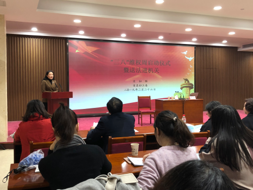 2月26日下午,省妇联、省直机关妇工委在洪山礼堂联合举行“三八”妇女维权周启动仪式暨“送法进机关”专题讲座,省妇联副主席邵荣出席并致辞,省妇联兼职副主席、省律师协会婚姻与家庭法律委员会主任谢文敏作《婚姻家庭财产风险管理》专题讲座。省直机关妇委会及女干部近200人参会。现场赠送了省妇联印制的《反家庭暴力法宣传手册》。