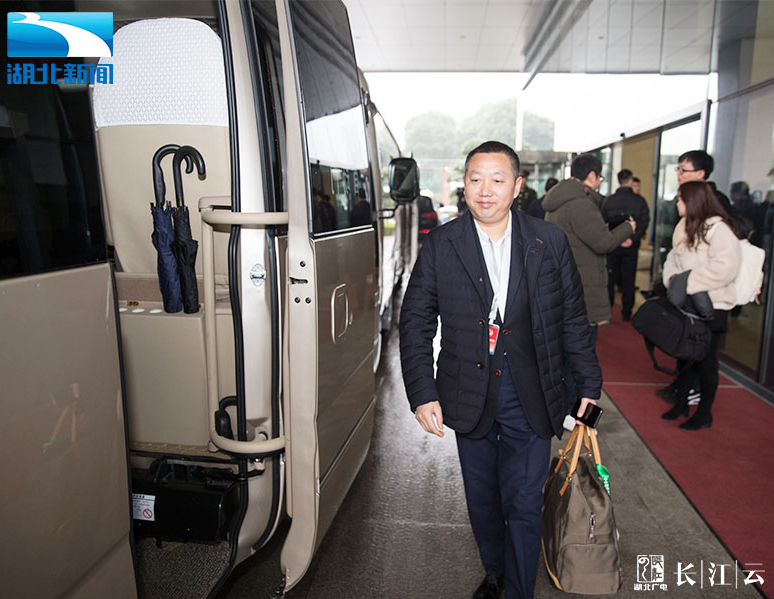 委员们登上大巴车,前往武汉站。