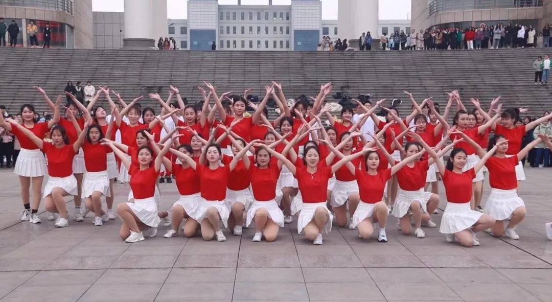突然,一群学生脱掉外套,奔向广场,红白相间的服装瞬间引爆现场,在这初春微寒的日子里,他们像火焰般热情,像阳光般温暖,他们用铿锵的舞蹈带动现场所有的观众,他们用明媚的微笑,展示了当代大学生青春的风采。