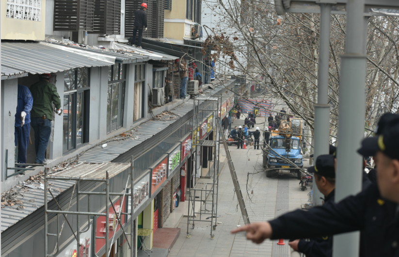 据江岸区城管执法大队相关负责人介绍,为进一步提升辖区主次干道沿线市容环境整体水平,江岸区在上级有关部门指导下对照环境整治提升要求,对解放大道沿线市容环境问题进行了反复排查,并逐一列出整治清单,对标整治。拆除沿线违章搭建的“两房一楣”,即拆除楼房二楼平台违章房屋、墙体上违建“吊脚楼”,主道各岔路口包括小区进出口违章搭建的门房,以及脏乱的招牌门楣等则是本轮整治的重点项目之一。3月18日,5个街道拆除的33处,近千平方米违建为集中整治拆除的第一批。