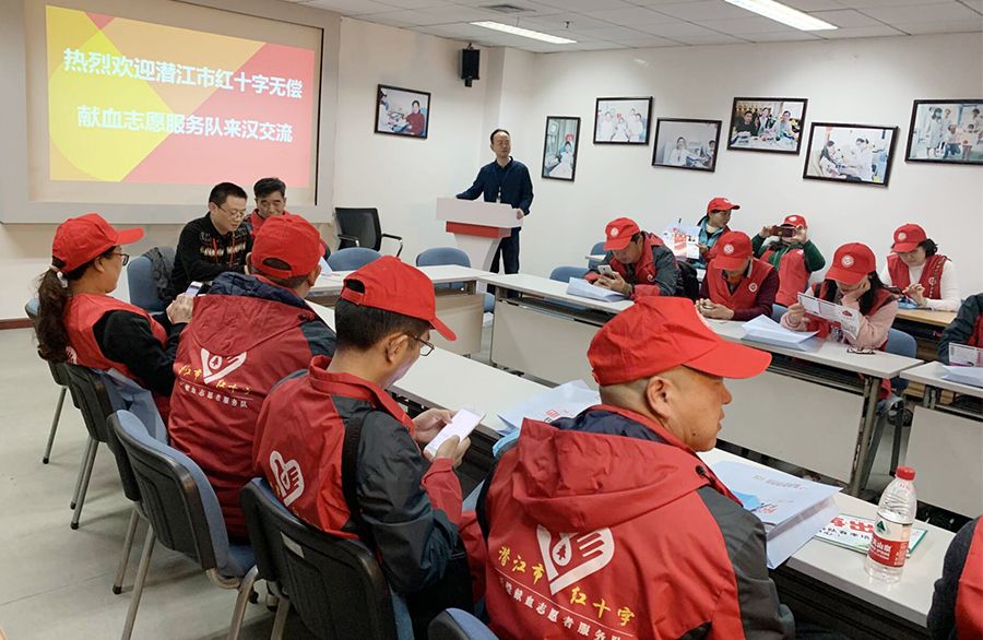 3月29日,潜江市红十字无偿献血志愿者服务队40余名志愿者代表到武汉血液中心参观学习。