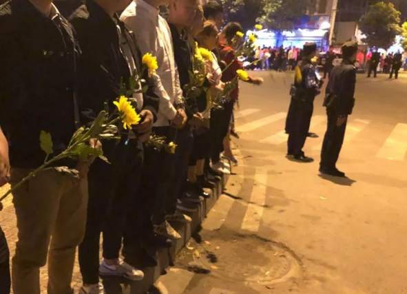 4月2日凌晨,载有凉山木里森林火灾失联人员遗体的车队抵达四川凉山州州府(即省会)所在地西昌市。凌晨1点左右,在西昌市区通往殡仪馆路上,群众自发走上街头,手持菊花守候在街道两旁,等候着在火灾中牺牲的救火英烈归来。前往殡仪馆的路面上摆放着菊花,写着“救火英雄一路走好”。