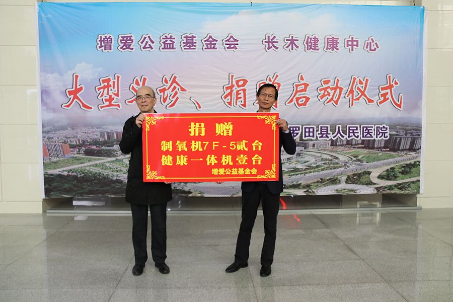 活动当天,增爱公益基金会向罗田县人民医院捐赠市值约4.5万元的2台制氧机7F-5型和1台健康一体机。