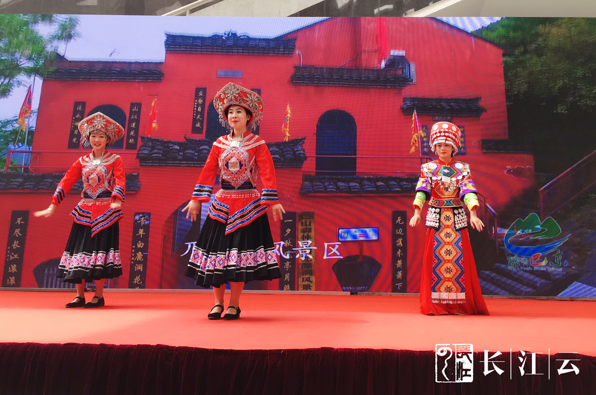 (图为现场土家族迎宾行为艺术展示)