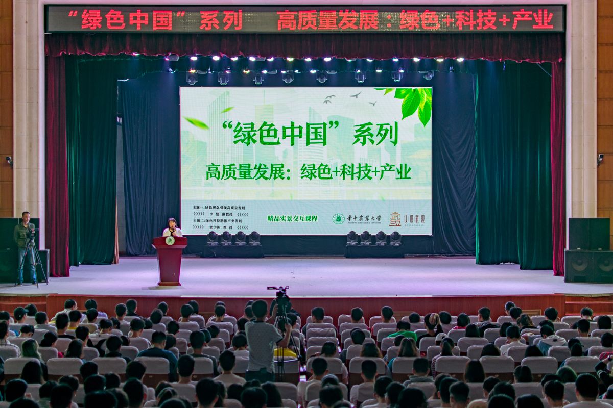 4月24日下午,由华中农业大学与华中科技大学共同主办的“绿色中国”系列精品实景交互课程在华农分会场开课。本次课程以高质量发展:绿色+科技+产业为主题,通过现场实景交互的方式实现了两校三地的实时互动。400余名师生到场聆听。