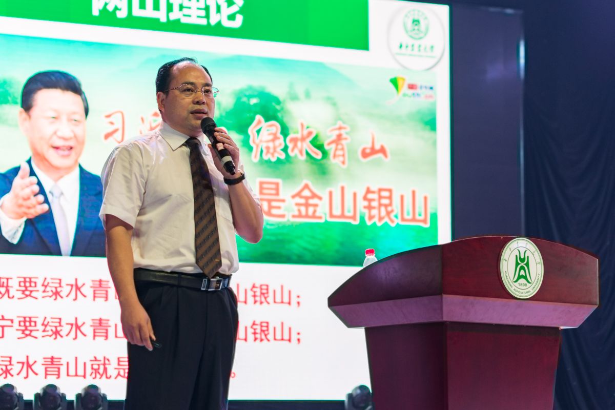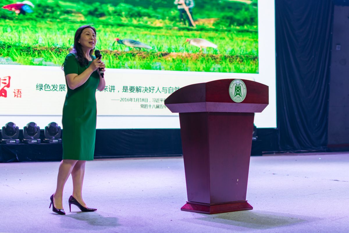 湖北省委宣讲团成员、华中农业大学马克思主义学院副院长李恺作了主题为“绿色理念引领高质量发展”的报告,从“坚持人与自然的和谐共生”、“践行绿水青山就是金山银山”、“绿色理念引领高质量发展”三个方面展开论述。李恺表示绿水青山和金山银山的关系归根到底就是正确处理经济发展和生态环境保护的关系,“要坚持在发展中保护、在保护中发展,实现经济社会发展与人口、资源、环境相协调。她提出了坚持节约优先、保护优先、自然恢复为主的方针,号召大家从自己做起,身体力行为环境保护做出贡献。在谈到如何实现高质量发展时,她表示要实现四个转变:即增长速度由高速增长向中高速增长转变;发展方式由规模速度型向质量效率型转变:经济结构由增产扩能为主向调整存量、做优增量并举转变;发展动力由主要依靠资源和低成本劳动力向创新驱动转变。