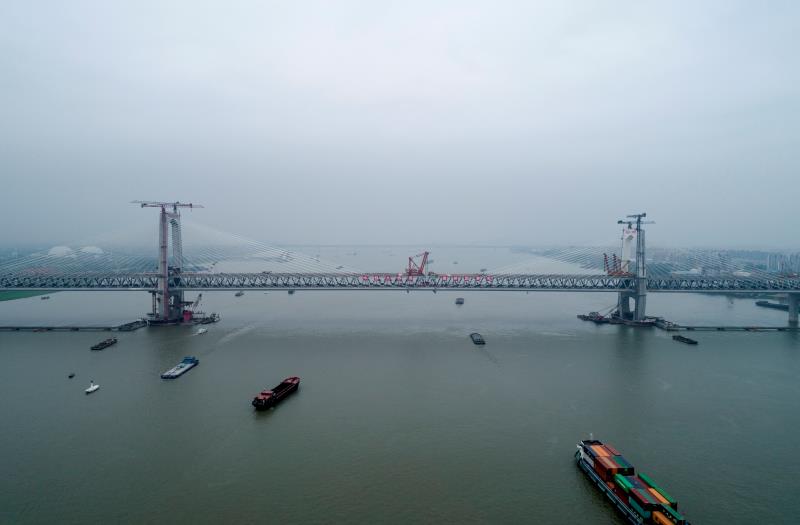 安徽省芜湖市长江江面上,芜湖长江大桥依旧屹立于东流的江水之中。大桥上的车流川流不息,这座通车已近20年的大桥是由中铁大桥局修建的。沿江往上3.5公里,一座由4线铁路8线公路组成的公铁两用大桥映入眼帘,这是新建的商合杭铁路芜湖长江公铁大桥。这座大桥于4月26日合龙了,这是中铁大桥局在芜湖修建的长江大桥第三次跨越长江(芜湖长江大桥、二桥均由中铁大桥局参建),连接芜湖两岸。