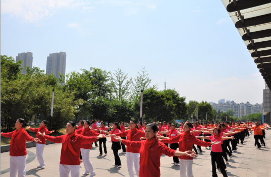 今天(5月9日)上午,伴随着世界各国华人排舞必跳曲目《舞动中国》欢快的乐曲,在武汉工人文化宫职工文化广场上,由2000多名武汉市职工代表组成的排舞方阵用欢快的舞步喜迎军运会、献礼祖国70华诞。
