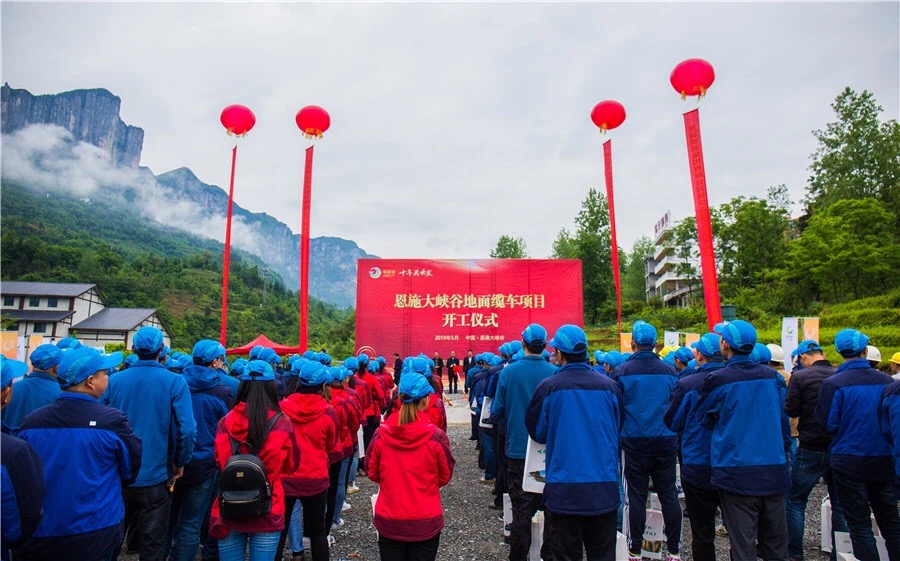 5月9日,恩施大峡谷景区地面缆车项目开工,该项目是湖北省第一家、国内最长、运量最大、技术最先进的景区轨道交通系统。项目建成后,景交运力将提升一倍,打破游客通向景区的交通瓶颈,将大大提升大峡谷景区服务接待能力和安全保障水平。