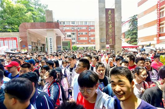 图为:武汉中学考场前,考生和陪考父母围在一起加油打气 楚天都市报记者邹斌刘中灿萧颢李辉黄士峰王永胜曲严摄