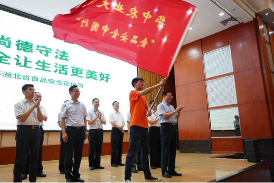 此外,省食安办负责人向大学生“食品安全湖北行”社会实践活动团队授旗。