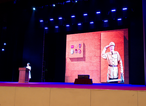 报告会上,恩施军分区政治工作处主任刘海伦深情讲述了张富清同志在战场上的英雄事迹,以及他对战友的无限怀念,并表达了一个新时代军人对老英雄的致敬,让现场观众感动不已。